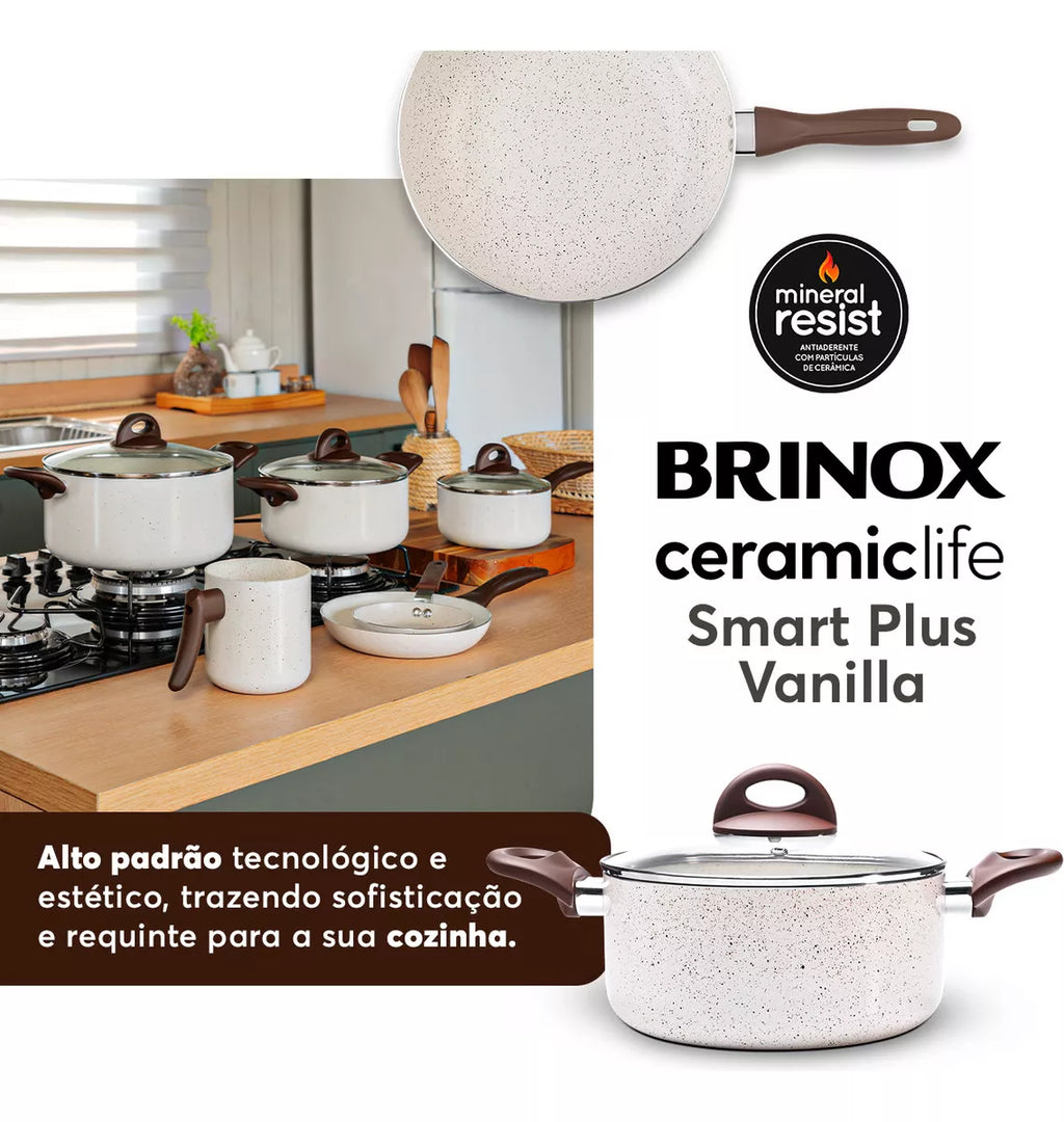 Conj de Panelas 8 Peças Ceramic Life Smart Plus Vanilla - Brinox