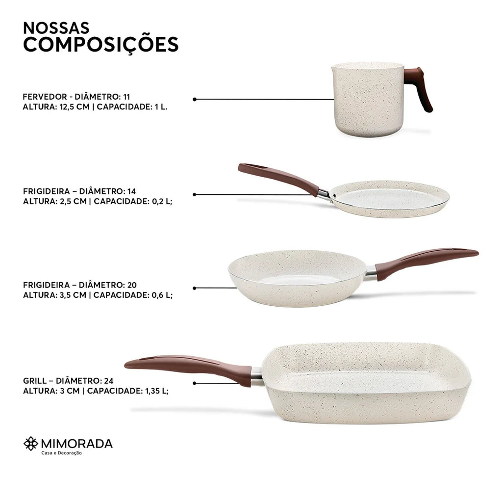 * 01 Panela com Tampa – Ø 18 cm | Altura: 9 cm | Capacidade: 1,55 L.