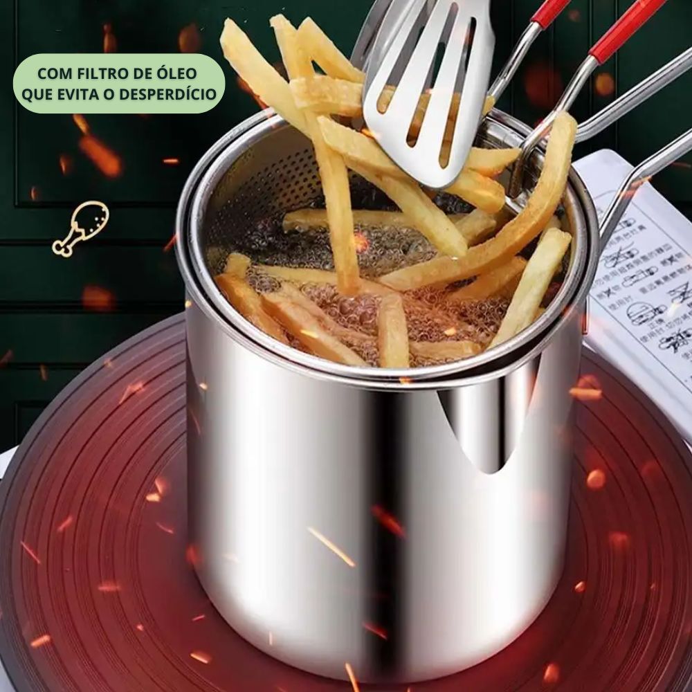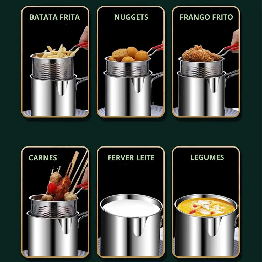 Descubra a nova era da culinária com a Fritadeira de Aço Inoxidável! Esta panela inovadora traz praticidade, segurança e eficiência, transformando sua experiência na cozinha.