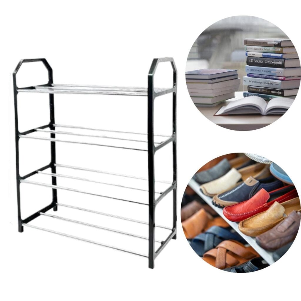 Desfrute de versatilidade e organização ampliada com a Sapateira Criativa Multiuso de 4 Andares. Além de ser um espaço dedicado para seus sapatos, este inovador rack oferece a praticidade de armazenar uma variedade de itens, como guarda-chuvas, chinelos ou até mesmo bagagem.Desfrute da Organização Inteligente com a Sapateira Multiuso de 4 Andares